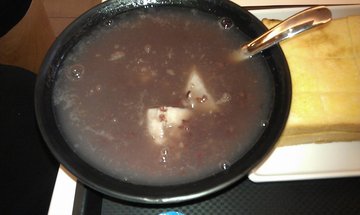 这家店就在西村对面,主要卖烧仙草芋圆之类的甜品,也有布丁吐司粥品和饮料等等,还挺丰富。早上没来得及吃早餐,就来这里点了一份紫米粥,加了芋头,另外叫了一份牛油吐司。紫米粥煮的很够火候,紫米软软的糯糯的,微微的甜味,芋头也很软很甜很面,非常喜欢!牛油吐司煎的刚刚好,虽然用料简单但是很好吃,牛油放的挺多,底层微微浸了一层油,很脆,连吐司边都很好吃。