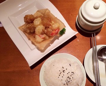 一茶一坐的味道蛮好的,爱吃他们家的凤梨虾球,油条里面塞满了虾肉,吃起来脆脆的,里面虾肉很有弹性!菠萝酸酸甜甜的!小份和大份之分,蛮人性化的!三杯鸡也好好吃,很嫩的鸡肉,而且量满足的哦!