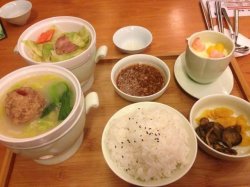 他们家地理位置还是不错的,在商场里面,而且边上还有商务楼,生意还是很好的,他们家的环境很好,分吸烟区和不吸烟区,这样可以不打扰别人的饮食,而且他们家很安静,很适合在里面聊天或者谈点事情什么的都是很不错的,他们家有套餐的,点分套餐量么正好,味道也不错,喜欢吃他们家的沙茶牛肉煲套餐,一份米饭加上拌饭的肉糟,还有一份小菜和汤,搭配的不错,最喜欢他们的肉糟,味道很好,搭配着软糯的米饭正合适啊,他们家的沙茶牛肉辣辣的,牛肉比较嫩,就是有点小辣,菜里面的汤汁比较浓郁,拿来拌饭也是很不错的,价格实惠味道好啊查看更多