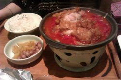 到点吃饭来一茶一坐,新世界的这家店满难找的,在3楼一个角落里~问了2人才找到~感觉像咖啡厅的味道,昏暗的灯光,沙发坐,地方不大。肚子饿了,想点2份煲吃的~现在菜单都是单点的份,我点了炸鸡套餐,服务员说是这里的特色,上来一整只烤鸡,我都傻了,太夸张了吧!朋友点了茄汁炸鸡排,那茄汁看起来真好吃,查看更多