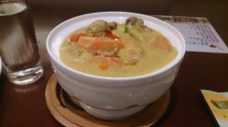 多年前,当我还是个初到北京的大一小土鳖,在商场看到一茶一坐觉得十分高上大,觉得不是吃饭是喝茶聊天的地方吧哈哈哈,可见见识对于一个女纸是多么重要= =某天来这里解决晚饭,因为有小券,可以送菜什么的,挑了凉拌木耳和木瓜牛奶,本来想要卤肉饭来着,不过经推荐决定要肉燥加米饭,顺便点个菜,又经推荐点了咖喱鸡,事实证明这是很厉害的推荐,心情一好又要了个甜点芋泥酥,额,就我的食量来说有点多了,芋泥酥打包惹= =咖喱鸡的造型和一茶一坐的其他菜一样,上面一个小盘子辣种,其实很浅的额,所以自己点一份完全吃掉了,剩下了胡萝卜,我不爱吃胡萝卜,从小就不爱吃额。咖喱的味道很泰式,焦黄的咖喱看起来就很有食欲,味道也很浓,肯定不只是咖喱粉或者块单独熬的,必须加了奶制品,略甜的口感配大米饭好好次!里面有辣椒油,估计咖喱本身并不辣,所以放了辣椒油调味的,还挺辣的,下饭咔。肉燥就是一小碗卤肉饭里的肉酱汁那种东东,配大米饭很好次的说,再加咖喱就更入味了,就是肉燥量略少,据说专门有人来吃这个肉燥拌饭的,那要是食量大的不知道要吃多少碗了汗。。。送的木耳很厚实,也很黑【哪里不对】口感和味道都不错,就是拌的略辣,不能吃辣的童鞋记得少要辣,木瓜牛奶也不错喝,淡淡的甜味那种,不过之后再喝味道就没有第一次好,估计不是一个人做的,感觉放的料什么的略不同啊。芋泥酥还不错,作为中式点心真心算好吃的!wifi灰常给力,看电视剧完全无压力,需要连接后再输入用户名和密码的说。 查看更多
