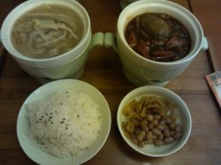 同事们午饭的解决方案之一。他们家三杯鸡,用料比较考究,鸡肉很鲜很嫩,配料都入味了,吃起来感觉不错。面饭配上一份肉燥还是很香的。他们家的养生素面是减肥朋友的选择之一,里面时蔬,蘑菇什么的都有,面条口感也不错。有一个很像鲜芋仙的甜点,里面也有芋头什么的,名字记不清了,可以几个人一起分享。查看更多