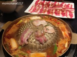 晚上去吃的~人不多,还蛮冷清的。。锅蛮有特色的,中间凸出来的地方是烤肉的,外面一圈是凹下去的。。蔬菜锅底,10元,他家锅底都是收费的。。精选肉类拼盘,158,也不知道是啥肉= =!!还有石锅拌饭,海鲜煎饼,铁板咖喱金针菇,还有几盘蔬菜~说实话,口味一般,为啥特色~不过沾酱,纸巾和小菜是免费的。。。