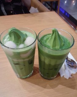 闺蜜是个资深抹茶控,经常爱来这家拔草,就连聚会都不放过我要来这家,喝的抹茶雪顶白玉拿铁,外表自然是很不错的,看上去比较有萌点,小圆子显得很Q,让人都舍不得破坏这种美感,抹茶冰激凌味道清甜,最喜欢的仍旧是咖啡部分,抹茶喝咖啡都是带着各自独特的香味,吃起来微苦却不显涩口之感。查看更多