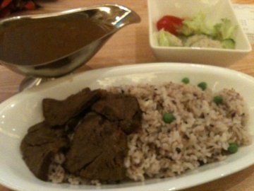 本来想吃个甜品,但看看时间快到6点了就点了咖喱牛肉饭试试,没想到这家的咖喱牛肉饭和别的地方不一样,牛肉是单独烧好切成厚片,然后把咖喱酱浇上去这么吃的,这样牛肉不是很入味呀,不过酱汁的味道还可以,杂粮米饭口感很好,感觉很健康的样子,蔬菜色拉很普通,看来以后还是继续甜品路线吧。