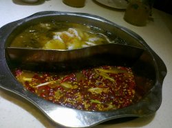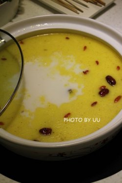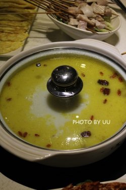 去年冬天,猪肚鸡风靡一时想念那暖暖的味道~听闻9号线沿线有家火锅店不错,一群人聊完天就直接地铁过去啦非常便捷,就在地铁出口处~环境布置的蛮精致的,小格调京剧脸谱,“俏江南”,大家想到一块儿去了,八卦八卦。。一楼有开放式的厨房,感觉满干净的长长的调料台,最近爱花生腐乳加沙茶~拾阶而上,耀眼的水晶吊灯,未到饭点,所以大大的二楼可以任我们选择挑了长条形的桌子,大家可以围坐在一起~下去拿调料的时间,朋友们已经点好菜了,速度\(^o^)/~因为人多,点了两个锅猪肚鸡锅,喜欢呢,锅子就超可爱的,有小兔子的图案^-^鸡汤煮的金黄,听闻用的是走地鸡。奶白色的是牛奶吧,还加入了红枣,看着就可口~迫不及待的舀了一小碗,鸡汤鲜美,特别是里面加入了胡椒,更提味,鸡肉也很嫩,喝了两碗,冰凉的手脚逐渐变暖~~~猪肚鸡锅中,适合涮菌菇,蔬菜等,感觉温暖又健康~酸菜鱼鸳鸯锅,喝了那个不辣的酸菜鱼汤,也不错~红汤很适合涮串串牛肉上上签,好口彩,在麻辣锅中涮涮,蘸上他家特制的“胡椒粉”更好吃这家的虾滑和肥牛也不错~比较特别的是马桥豆腐干和自制蛋饺马桥豆腐干,一上桌,香气袭人,个人不太爱吃豆腐干,可是朋友们吃很欢~自制蛋饺,个头很大,虽然扁扁的,但是自制的口感就比较好(我也会做蛋饺呢 O(∩_∩)O哈哈~)饮料:冰桔茶,类似代官山那样的一瓶,12元,比较实惠的~酸酸甜甜,搭配火锅正好~最后还送上免费甜品:冰镇酒酿小圆子,蛮特别的嘛我不吃酒酿的,忽视╮(╯▽╰)╭冬天真的很适合吃猪肚鸡呢一顿下来,超级暖和♪♪♪查看更多