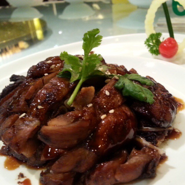 朋友请客,自驾过去的,感觉旁边有些荒凉。环境还不错,装修看着蛮高档的。水晶虾仁很大很新鲜,饱满有弹性。牛排很嫩,蘸上黑胡椒酱后味道会更浓郁。橙香九味鸭,用橙子的果香去除鸭肉的腥味,甚而让它覆上甜甜的味道,肉质甜香蛮新奇的口感。…查看更多