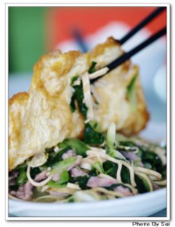 三丝跑蛋,名字就很具有特色,开在轻轨边上,因为离猪爸他家近,出站的时候会看到的说。传说是出租车司机吃饭的地方,想来肯定是价廉物美,让悠悠联想到公司楼下的富民面馆以及附近一些小饭店,每天中午车子排队~既然取名为三丝跑蛋,那么这道菜肯定就是他家的招牌罗。点了这份盖浇饭,另又点了红烧划水、酱爆猪肝。两个人share了吃,分量正好,太多也吃不掉嘛!三丝是藏在跑蛋的下面,跟偶想的不太一样,米饭颗粒都很分明,感觉不错。红烧划水和酱爆猪肝也都是浓油赤酱的本帮菜,很正宗,挺好吃的。感觉跟进贤路上的一排本帮小饭馆差不多,路过吃吃还是不错的选择,特意过去就有点浪费了哦!推荐菜: 三丝跑蛋餐厅特色: 本帮查看更多