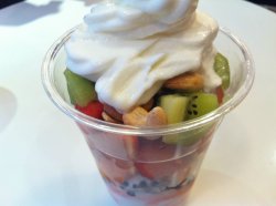 【位置】崇文门国瑞城G层【服务】态度挺好的【环境】卖酸奶小食的档口,有歇脚的小桌,小清新范儿【点评】总的来说就是加了很多料的酸奶冰淇淋,可以任选几种坚果和水果加到酸奶里。时令水果都挺新鲜的,切块也比较大,不碎,有火龙果、芒果、哈密瓜、猕猴桃等等,坚果什么的可以选腰果、杏仁、核桃、蜜豆、麦圈等等,酸奶和这些食材混合到一起,色彩多样花花绿绿的,口感也很丰富,清清凉凉酸酸甜甜,作为消夏食品挺合适的。查看更多