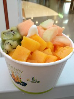 地址: 东城区崇文门外大街18号国瑞购物中心G楼中岛4-7号。酸奶和水果干果搭配起来吃,各种甜,大杯地理24元,加了芒果,木瓜,草莓,核桃仁,腰果,水果很新鲜,酸奶是冻过的,酸酸的,搭配甜的水果,非常可口的酸奶冰激凌。查看更多