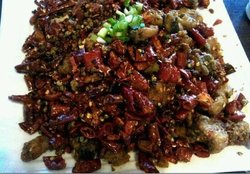 三川麻辣风中山大道818号新佳丽购物广场6楼(民生路口), 江汉路。经常需要等座位的一家川味餐厅,而且还有等位取号机器哦,看来人气相当不错呢,这里的川味做的还不错,比较地道,他们家的川香辣子鸡很好吃呢,而且造型很别致,但是说实话虽然味道好,但是里面的辣椒真的好多哦,调料占去一大部分,里面的鸡肉感觉不是很多,不过酥脆麻辣额味道真的很赞,吃一块想吃第二块,停不下来的感觉呢。