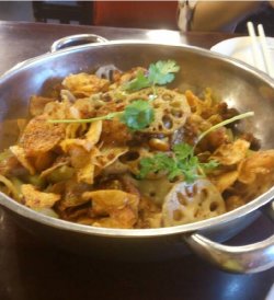 最早开始吃干锅牛蛙貌似就是去额这家店哦~就连不是很喜欢吃辣的妈妈都很肯定这家店的说~牛蛙的量蛮足的,一般和妈妈一起去吃的话,点上一份干锅牛蛙,一份酸辣土豆丝就足够了~牛蛙肉蛮嫩的,炸的外皮脆脆的,藕、土豆、莴笋都蛮多的,麻辣鲜香,酸辣土豆丝好吃的,酸酸辣辣的味道,蛮开胃的,土豆丝脆脆的,还不错吃的~查看更多