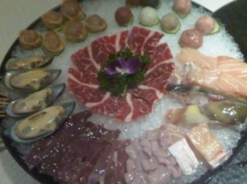 很荣幸的被选中参加了上上澳门豆捞的试吃活动。真的很赞哈这里。 地处金基东方颐园的二楼,环境优美,服务态度很好哈。一进门就是热气的服务员。总监还有经理也很热情哈! 首先我们吃的是刺身,味道很赞哈!!尤其加上芥末之后,口水。~ 哈。真的很好吃,一定要尝试下。~~名字是刺身5拼盘~ 128元。味道还是不错的,很新鲜的哈。!这个事调料。吃刺身时候用的,哈,五彩斑斓呀。寿司也很好吃。绝对赞哈,一定要试一下。!这款菜的名字是寿司大拼盘哈。吃完之后就开始等着火锅啦。火锅的汤很特别,一个是清润海底椰汤,一个是香西白贝汤,感觉海底椰的味道很赞哈。推荐尝试。锅底是38元。肉丸是绝对一定要尝试的。味道超级好。尤其是芝心牛肉丸,一定要试一下,味道真的是一流!!肉丸一定要尝试一下哈!!这个是鱼滑,味道也是一流的哈,推荐尝试。,价格是38元。~雪花牛肉片,这个味道很棒哈,牛肉片长得也是真的漂亮~~雪花的~~煮熟之后也还是那么好哈。价格是68元,推荐哈。~这个超级好吃,一定要尝试下,名字叫做脆爽花枝片,真的很好吃。!!很爽口~~在外面没怎么吃过,价格是28元。极力推荐一试,。!!鱿鱼筒,这个味道也很赞哈。~~里面有膏,很好吃哈,香香的,一定要尝试呀。~价格是32元。推荐。~~总的来说,这次的试吃真的很棒~味道非常的赞哈。~~可惜不能够上传多点图片,~~还有好多好多的图片没有上传。555