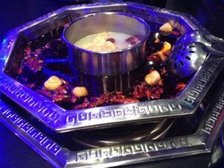 吃了几次才知道是薛之谦开的,我是有多土啊!火锅味道还是挺好的! 特色的锅中锅,外面圈大的要的是辣的,里面小的不辣的,谁叫我们都爱吃辣呀!菜品的分量很足!一串串的放进去煮很好,不怕找不到,一人一串也方便!服务就一般了,人多了服务也来不及