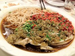 人可真多啊,晚上7点多,依然排着长龙、排队时,服务员会拿着小推车为我们送上饮料还有爆米花,非常人性化。虽然他们是以本帮菜为主,但还有几道湘菜也做的蛮好的-剁椒鱼头。鱼头的肉质超嫩的,虽然上面都是辣椒,不过由于改良过的,所以不会觉得太辣,味道也超鲜的,面条倒进汤头里面,吃上去又爽滑,又Q,吸收了汤头的精华,很好吃、查看更多
