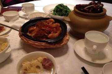 3。8节去吃的,当天预约不到很早就去等位总算给了一小桌,晚上妈妈打电话来才知道原来他家当天在淘点点搞活动38折预约定位支付宝支付,嗨,心痛,我们是团购券85折。 店员的服务很好的,会来问菜的味道好不好,团购券使用也全程ok,想点的招牌菜全部没有,只得点了蔬菜色拉,熏鱼,金瓜拌海蜇,太一般;热菜价蛮贵的,点了红烧肉,很咸肉不酥不好吃;鲜虾粉丝煲,三个虾一切二放在粉丝上面,味道可以;唯一好吃的菜,脆皮龙利鱼量很大,外面的脆皮很薄奶香味的酱鱼肉没有骨刺;点了锅贴,麻球点心的味道也不错。…查看更多