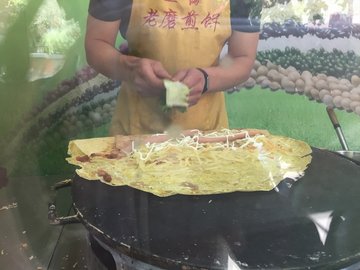 看来这样一家店竟然是连锁店,怪不得在吃过大西路的那家蛋脆煎饼之后询问是否送餐到房产大厦竟然被回绝了~若是早知有这样一家分店,我也不会费那劲受那气~也是因为团购,才发现,在这么近的附近竟然也开了蛋脆煎饼,现在人都太懒了,一开始真的想让他送的,打电话过去,服务相当之好,店主表示今天就他一个人了,实在腾不出人手来送,建议我们过去买,还可以用团购券,便宜2元钱~反正也是不知道点什么,于是乎就欣然前往~店家是很人性化的,贴了各类实用的套餐,为了凑够十元钱,我是这样点的:正常的一个煎饼+脆饼+鸡蛋=4元,我又加了一份土豆丝1元+生菜0.5元+沙拉酱1元+玉米肠1.5元=4元,再加上一杯豆浆2元,刚好10元,就相当于买饼赠豆浆了~豆浆是早就打好的,浓稠浓稠的,是我喜欢的类型,但煎饼貌似比我在小西路那家买的同样的量小,土豆丝略嫌,生菜叶较小,不知是什么情况~而且小西路一切两半的煎饼是每半一个纸袋,他这个是放到了一个袋里,吃起来不太方便~同事是喝了红枣花生的豆浆,这个需要鲜榨,放的料挺多的,当场做当场能看见,需要等3分钟左右,做完一人分了一杯剩下的就放到保温瓶里,跟普通豆浆有所区别~…查看更多