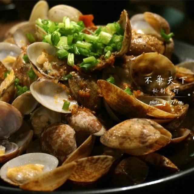 今年还真是没怎么吃小龙虾呢 心痒痒的现在小龙虾的价格哦 突飞猛涨的 感觉都快吃不起了听闻这家“不争天下 秘制龙虾”不错 就去拨草了开在光大会展中心的对过 两层楼 简洁大方唯有木桌椅 垃圾桶 塑料手套 塑料围兜 和一盆盆鲜香四溢的龙虾勾魂一进店里 就能闻到小龙虾的味儿来 那些吃的热火朝天的朋友 都会来上一份啤酒or可乐 冰镇最爽啦『秘制卤味拼』¥15 嘿 小龙虾馆的卤味也好吃嘛 卤味都渗进到每一个鸡爪里 不干不燥的 吃口还略带滑爽 不错『秘制小龙虾』¥98 微辣 拨好壳的小龙虾最好浸下调料 这样使之更入味『金牌小龙虾』¥85 送一份金牌酱 有点干煸的意思 送的那份酱是特色 带有点甜味 蘸小龙虾别有风味哦凉茶8元一罐 可乐5元一罐 都要的冰镇一盆小龙虾 基本一半都没有“黑筋”也就是说龙虾还是挺新鲜的没记错的话 应该是今年第一顿小龙虾 总体还是满意哒…查看更多