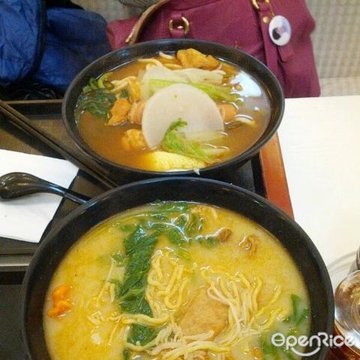 一碗面条 50大洋吃饭的日本人居多 OMG...........HAHA我是不太哈面条的啦 所以口味给了①这面还算是韧劲十足的 够Q 够弹碗嘛 跟味千那种差不多额汤有点咸咸环境不错 对得起那价钱咖喱饭没尝试 因为色迷不是老好…查看更多