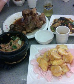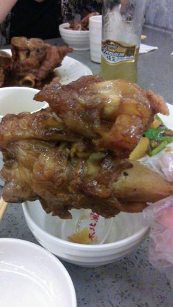 听名字就知道是吃东北菜的啦,冬天吃吃东北那边的菜式,希望可以帮助御寒吧酱大骨不但味道好,气魄也十足,好大的一块大骨直接就拿上来,而且看得出来烧了很长时间了,味道也充分到位了,唯一麻烦的是吃起来实在不方便,两只手都用上了还有点手忙脚乱的东北大拉皮有点像炒河粉,但是比炒河粉细不少,大概也是因此才更容易入味吧地三鲜感觉烧得太油了,虽然味道还过得去,但是那个油腻的口感不是很好查看更多