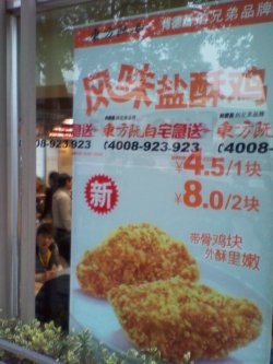 这家店就开在公司的对面,所以说还是蛮方便的。中午想不出吃什么的时候总是有同事建议去他们家。很早就耳熟于他们家的广告,肯德基的兄弟品牌,后来才知道原来做的是中式快餐。味道只能说是马马虎虎,现在的价格貌似也不算很便宜。不过刚刚推出了任意搭配的套餐,感觉还不错查看更多