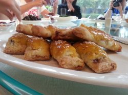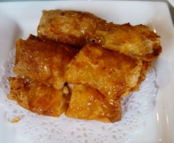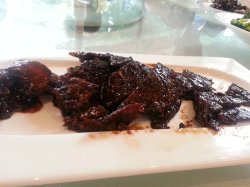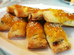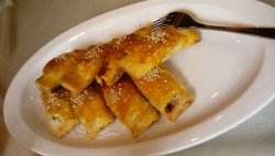 东方餐厅在朝阳区建国门外大街1号国贸饭店内,星级饭店里的环境自然没话说,下午茶点心自助98一位,小吃的品种很多,我这里要介绍的是一道甜品——麻酱糖饼,相信我们每个人小时候都吃过的,留恋那口却找不到能唤起儿时记忆的那个糖饼,这里的糖饼黑乎乎的,被切成一块块三角形的堆叠起来,表皮微微泛油,内料饱满到似乎呼之欲出,注意吃的时候小心点,不要被烫伤,一入口,麻酱混合着红糖的香味,十分解馋。查看更多