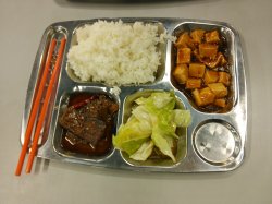 以前在A9楼混的时候,一开始没有食堂,常常得走上20多分钟,去别的园区吃饭。后来有了培训学员,人一增多,领导体恤了下民情,给新开了个食堂。这就是由来。因为学员的临时性,也导致大大降低了食堂提供的菜品的丰富性。一般都是份饭套餐:菜品的种类一直很稳性,常年提供几个品种,而且菜给的很少。为数不多地一家麻辣烫,味道很一般,还总有人排队。…查看更多