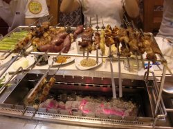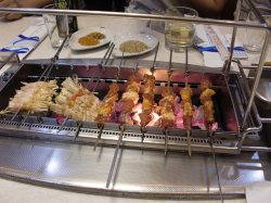 一般都是晚上当作夜宵去吃,比较喜欢他们家的就是那个全自动的烤架,不会烤的也不用担心火候。鸡翅很好吃,外边烤的酥脆,里边多汁,鸡肉很嫩滑,个头也不小,比较喜欢的就是蜜汁和麻辣的。五花肉金针菇,菜肉合一了,五花肉不是很肥,金针菇也很新鲜,味道不错,就是分量稍微小了点。面包片大爱,上边有厚厚的一层黄油,烤的外层发黄就可以吃了。冷面,虽然说冷热交替吃不是很健康,但是我还是很喜欢吃完烤串来一份冷面,味道很正宗,荞麦面筋道滑爽,喜欢。…查看更多