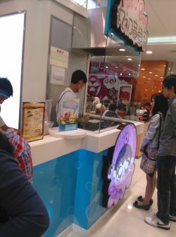 这家小丸子貌似生意不错,味道只能说一般,但是性价比还不错,环境什么的,也不错,算是比较干净的,小弟做的时候也戴着口罩,感觉比较卫生,买的是芥末味的小丸子,不好吃,芥末酱的味道不浓郁,里面的丸子感觉软趴趴的,很一般