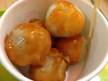 经过这家店的时候被辣辣的香味所吸引,一看有丸子还有辣年糕,索性试试看咯!丸子有包心牛肉丸、牛肉丸等,口味有不辣和麻辣2种味道可供选择。丸子因为一直放锅里现煮的,辣辣的非常好吃,尤其是在天冷的时候更是暖上心头。辣年糕的量不算多,胜在新鲜热辣所以也还算不错。