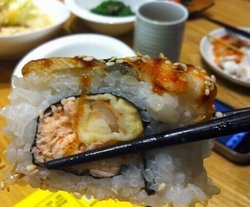 #爱情不怕辣# 一道让我印象深刻的美式寿司,温柔版,米饭卷着的金枪鱼、奶酪、黄瓜丝,减少了芥末的用量,只是薄薄一层覆盖在单面卷上,再铺上牛油果整体压实,点缀着鱼籽很可口的样子,一口吃下青芥的味道伴着气体窜出鼻腔。      乌冬面是我很爱的一款日式面条,界于面条和粗米粉间的口感,挂着汤汁,呼呼吸入的不光是面条还有那份滋味。      在掌柜的指点下第一次尝试三文鱼刺身夹上芥末沾上酱油的吃法,自家研磨的新鲜芥末味不会太重,比别家多了那么点清香。      菜单上看着菜品虽不多,种类还是很齐,从刺身、手卷、手握、美式寿司卷(当然它的品味最多)、烤物、面条、米饭、甜品和酒水全都有。      简约的店堂,小清新的草绿色沙发座和木质桌椅透露着大地的亲和气息。桌与桌之前的间隙刚好,邻桌的顾客前互相不会影响到,明亮的灯光适合用餐的客人各种自拍美拍。      掌柜很好客,会主动告诉店里的优惠活动,凭会员卡每天都有菜品赠送。Read More