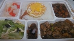 赶上天气不好就一定要订丽华,送餐时间有保证,而且也算是老牌快餐了,质量有保证。他家的鸡排饭还是挺好吃的,有一个煎鸡排,肉很多,特别香,还有个煎蛋,营养搭配全面,另外就是一荤一素了。这次是孜然鸡片和炒包菜,味道都还不错。整盒菜也没有一点肥肉,很健康。鸡排饭是16元。查看更多