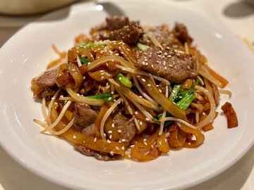 桃胶杨枝甘露 / 普宁炸豆腐 / 葱油饼 / 海胆炒饭 / 脆皮吊烧鸡 / 四季豆爆法国鹅肝粒