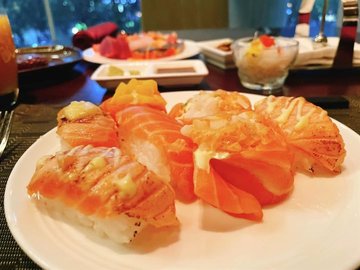 海鲜 / 三文鱼 / 原盅炖汤 / 刺身任食 / 烤羊排 / 现开法国生蚝