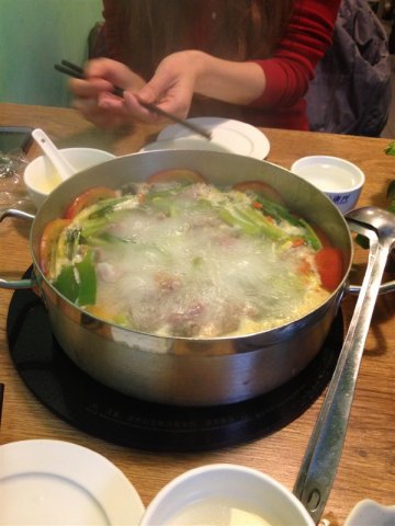 我是去丽江玩的时候吃的腊排骨火锅,当时一群人大半夜的出去,吃的特别爽,回到北京后偶然在护国寺小吃街发现了这有一家腊排骨火锅,就迫不及待的进去了。他家是上下两层,服务员都是云南姑娘,穿着少数民族的服装,店里装修很有云南特色,火锅是用的电磁炉,比较环保,它是先上来一盆腊排骨,煮好以后先吃肉,把肉吃得差不多了开始涮菜。腊排骨是经过腌制的排骨,一点也膻,反而有种特别的香味。价位也还可以,不是很贵。