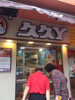 现在招牌换得漂亮一点了。久久丫的鸭脖子有不辣的口味,所以一直吃的,最爱他们家的椒盐味的,现在更干净了一点,一盒盒原味的给你,在给一包椒盐粉,自己撒上去就行。还推荐原味烤脖,这个就比较硬,一整根鸭脖的烤,不过特别有嚼劲,口味的话偏甜。鸭膀的话就没有绝味的好吃了,各有所长嘛。他们家的小素鸡也很好吃,因为小,所以味的很烧得进去。现在分店开得多了,购买也挺方便的。…查看更多
