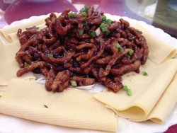 菜品:蓝莓山药非常非常的甜,里面好像放了炼乳还是什么,奶香的味道很浓郁,也很绵软,蓝莓酱也很多,非常甜腻,萝卜苗豆腐丝很清爽,萝卜苗有点辣有一点土腥味,豆腐丝很劲道,猪肉大葱饺子馅儿很大,猪肉很嫩,葱味浓郁了些。环境:环境一般,地板黏黏的。服务:服务很热情。价位:价钱不贵。推荐:☆☆☆☆查看更多
