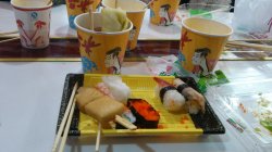 逛街的时候,看到这边人还蛮多的,以前也没吃过,就想尝尝了,这就是我的一顿晚餐了。寿司品种蛮多的,价钱也还合适,我买了一份43的好像是,里面每种寿司都没有重复,有小黄瓜寿司,鱼子酱寿司,三文鱼寿司。。。。。。吃的还算满足。吃不饱,还买了他们家的关东煮,我买了不辣的那口锅里的。基本上都是3.5一串,我买北极翅,鱼豆腐,还有一串大白菜,卷成一团,还带了一点点肉丝。总体还不错吧,也看到好多人买了打包呢。查看更多