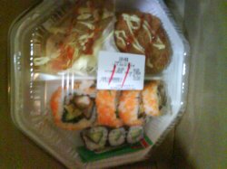 他们家的寿司挺好吃的,而且价格也是蛮实惠的。他们家的寿司个头挺大的,食材也蛮新鲜的。买他们家的寿司里面就付有酱油和芥末,筷子他们家也提供的。到了晚上去他们家买寿司还可以买到打折的,比白天要便宜很多的。查看更多