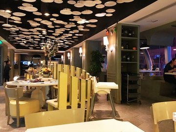 早就听说他家的意面很不错,加上得知生日当天可以免费赠送一份特色意面,所以生日月当然要去拔草啦。选择了交通最为便捷的南京西路店,地铁二号线南京西路站出站就看到店所在的中创大厦,义面屋位于5楼,有直达电梯。餐厅的装饰以简洁的黑白色调为主,靠窗的景观位置很棒,幸运地入座了。 靠窗位置将南京西路的街景尽收眼底。看到我们带着孩子,服务员立即贴心地送来儿童餐具。除了正式菜单,还有两种套餐可以选择,因为生日,有赠送一份意面,另外还能特价18元购买原价28的酥皮汤,就选择了128的套餐,感觉两大一小吃足够了。128的套餐里有两份主食,开胃菜、汤、沙拉、甜品、饮料一应俱全。他家最惊艳的就是意面,因此主食选择了推荐最多的奶油明太子墨鱼意面,推荐这款的人很多,果然很棒,酱汁浓郁,加上有嚼劲的意大利面和配料,超美味。另一份主食选择了牛排,牛排显得稍微老了一些,而且很薄一片,酱汁倒是不错。生日当天还能享受一份意面赠送,三选一,另外可享受酥皮汤特价18元。他家的意面种类繁多,这次试了两款都很好吃,其他菜品相对普通。冲着意面,还考虑会来尝试其他口味的。