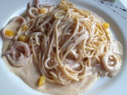 当一走进去,感觉很高级的餐厅,非常的优雅的店铺,透明宽敞的店堂,很是舒心!她们家的意面又各式各样的,琳琅满目,不过价格也不便宜的哟~一份基本都要4,50的样子,不过量还是蛮多的啦~墨汁鱼面很赞的,一盘黑色的面,很有个性,而且口感也很有弹性,不错啦查看更多
