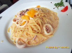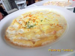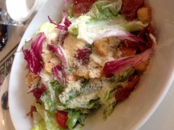 听名字就知道是家意式餐厅了,而且是主打意大利面的。点了份算是特色的奶油明太子墨鱼面,奶味很浓厚,加上明太子有点咸的味道,搭配起来口感不错,而且墨鱼挺有嚼劲的,里面还有菠萝,不错。凯撒沙拉也挺不错的,里面是鸡肉,挺大块的,色拉味道也不错。查看更多
