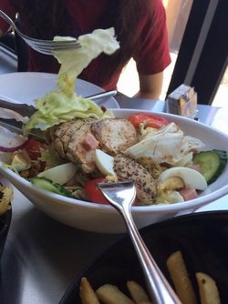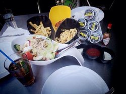 他家就在工体体育场里面,两个人点了他家的乌巢披萨,BBQ鸡翅还有饮品。端上来以后才发现,披萨是好大的一张,两个人根本吃不完,BBQ鸡翅估计上面是涂了蜂蜜烤的,所以是带点甜味的,个人感觉只能算是一般,没有烧烤店里面做的好吃,饮料是可以续杯的,这点还挺不错的。总体来说感觉一般,就是随便吃吃啊。查看更多