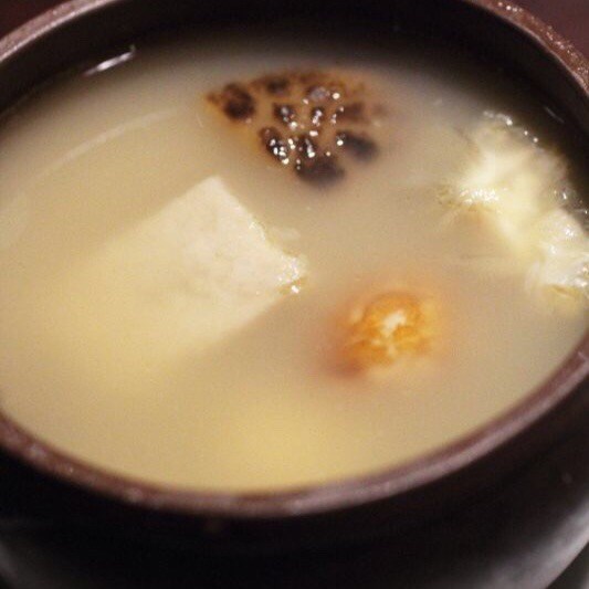每片清酒鹅肝都配一片像煮过的生梨片一样的薄片,这个清酒鹅肝貌似用红酒煮过,不算很肥厚,不过入口不是很腻,很嫩很滑,还带有淡淡的酒香,生梨薄片,也甜滋滋的,很清爽。