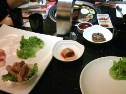 和朋友2个人去吃的 点了3盘肉 2份饮料一开始还担心不够吃 最后2个人都吃撑了...辣味五花肉很厚 很大一片...味道还可以 不过烤一次基本上就要换一次烤盘了 囧还有超级美肥味道不错 很嫩 多汁总体来说味道还不错就是服务员好像很少 我们坐在角落里 服务生很难叫...查看更多