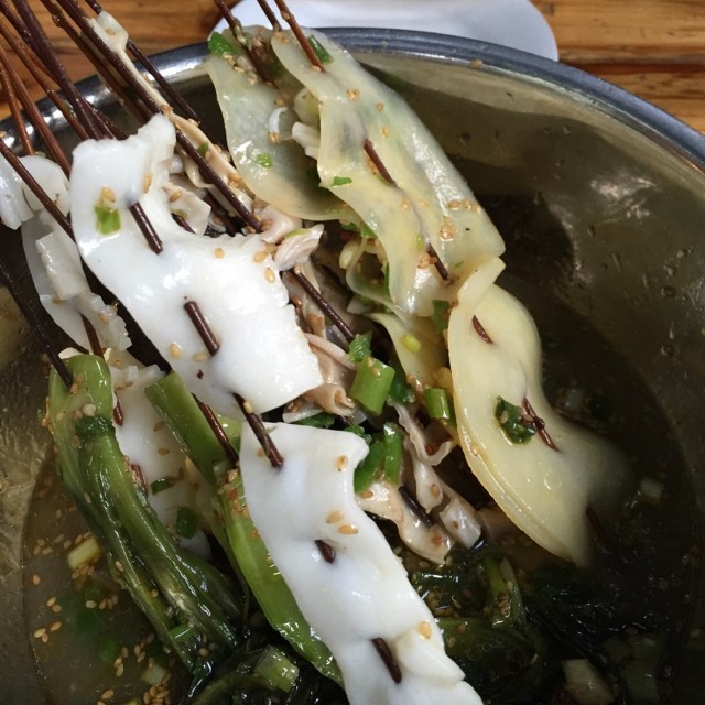 草堂北路一路找过去,好多条小街都有标起乐山钵钵鸡的店面,但我去的是郑记乐山钵钵鸡,在草堂北支路85号吃货节秒的,快过期了,电话预定是说不能打包,所以下班后急忙赶过去店里好多人,已经坐满了,我坐街边上,还不错店不大,整体装修也比较简陋,最里面是冰柜放菜,最外面是放作料的台台钵钵鸡作料有两种口味,传统红味和藤椒味,我喜欢红味的里面已经坐满了客人,就是街面上也座了两桌了,我只好坐的外面验号后老板发个盆子自己去取菜菜,在最里面几个冰柜里摆满了已经串好的串串选择喜欢的拿,珺肝、鸡心、鸡脚、牛肉、毛肚、鹌鹑蛋、藕片、西兰花、花菜、木耳、豆腐干......选好后盛在一盆盆里,取下芊芊,老板再在上面浇上红油,钵钵鸡的料,这下好大一盆钵钵鸡上桌了味道不摆了,很巴适,最关键所有食材好新鲜,每一串的分量很足啊,及时没有团购秒杀,也才5毛一串,很便宜最遗憾的是赠送的凉糕没有了,本想没有了老板送碗白饭,结果老板不干,只好点了一碗,哎!这点老板小气了哈哎!赠送两碗凉糕,价值6元,没有了!!配合钵钵鸡还有鸡汤饭,不过我没有点…查看更多