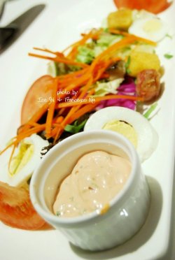 这家开在虹口龙之梦。感觉这家生意一直不是特别好。不像虹口龙之梦里其他的餐饮店那样火爆。后来这家做团购了。看着里面的东西都是小KING蛮爱吃的。所以就团了下来。这个其实类似于萨利亚这种店。不过阿奴最失策的一件事情就是。他只团了两人餐。其实我们三个人应该团3-4人餐才够吃的。我们去得算是比较早。找了个沙发位坐坐。而且这家店里有桌游和游戏棋玩的。吃好饭玩一会还是蛮惬意的。正好那段时间小KING刚刚学会走飞行棋。还处于感兴趣阶段。这家正好也有这个棋子。马上拿了准备吃好饭玩。。我们团的套餐里包括乐度色拉、香烤全翅、眼肉牛排蒜烤、拿坡里虾仁意面、蛤肉巧达汤、玉米浓汤、芒果布丁和金桔青柠茶,东西还是挺丰富的。。。乐度色拉:这个很明显是归我的。阿奴和小KING都是食肉动物。怎么可能对这个感兴趣。不过这个色拉味道一般。随便吃吃。能塞饱我的肚皮就行。香烤全翅:两只全翅。阿奴和小KING一人一只。我咬了一小口。搭了下味。一般性。眼肉牛排蒜烤配了黑椒汁:有点老了。牛排的品质也不怎么样。小KING又吃掉一半。拿坡里虾仁意面:这个面味道还是不错的。里面的料很足。小KING包掉了。他蛮喜欢里面的虾仁的。蛤肉巧达汤:味道不好。我不喜欢。玉米浓汤:这个汤的味道不错。玉米味非常的浓郁。原本以为这个汤也是归我的。没想到小KING也爱。又被他抢走了。芒果布丁:不爱芒果的飘过。阿奴和小KING两个人。你一口我一口的吃掉了。金桔青柠茶:说是招牌。但是味道一般吃好喝好。阿奴没吃饱。。玩了两盘飞行棋。小KING很满足的回家了。查看更多