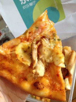 去逛龙之梦的家乐福,饿了就找地方吃饭咯,看见这家有吃pizza的就进去了。我点了一个鸡肉的pizza,还有一杯饮料,让他们去冰,服务员特别nice,态度超级好。pizza上来了,没有芝士的,上面有鸡肉,有蛋,我超级喜欢吃,而且是薄底的哦,感觉很脆很香,就是鸡肉稍微有点老了,我一下子就吃完了,而且上来之后,服务员会为你把pizza用工具切开,服务周到。查看更多