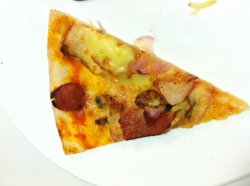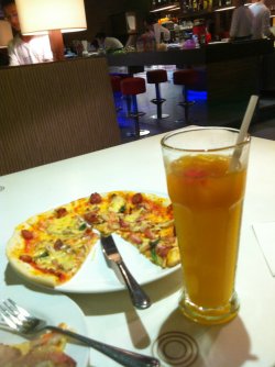 看电影的时候晚上顺便去吃的。披萨是美式薄底的。配料还蛮多的,脆脆的,味道还不错。果汁应该是冲调的,还可以。芒果布丁不错,小小的一杯,冰冰爽爽的,芒果味道的东东我都喜欢服务态度还不错的,刚到就有人主动倒好冰水,不错。、查看更多