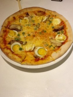 在新浪微美食上中了他家的一个披萨+奶茶。 正好又有团购。 那就去消费了。 他家号称是互动派对主题餐厅。 唉,可惜周围都没有人在玩桌游。我和老公因为还有事,也没有玩。有点小遗憾啊。 薄饼披萨(照烧鸡肉口味)很好吃啊。 有鸡肉,鸡蛋,青豆,照烧酱。薄饼的,确实比厚大饼好吃多了。 很脆的。他家的奶茶不好喝啊。 只有茶味。感觉像是喝甜的白开水。 蔬菜番茄意大利面也还不错。面条很精道,QQ的。 就是里面没肉,吃了有点不过瘾。总的来说,味道还不错,性价比OK 的。查看更多